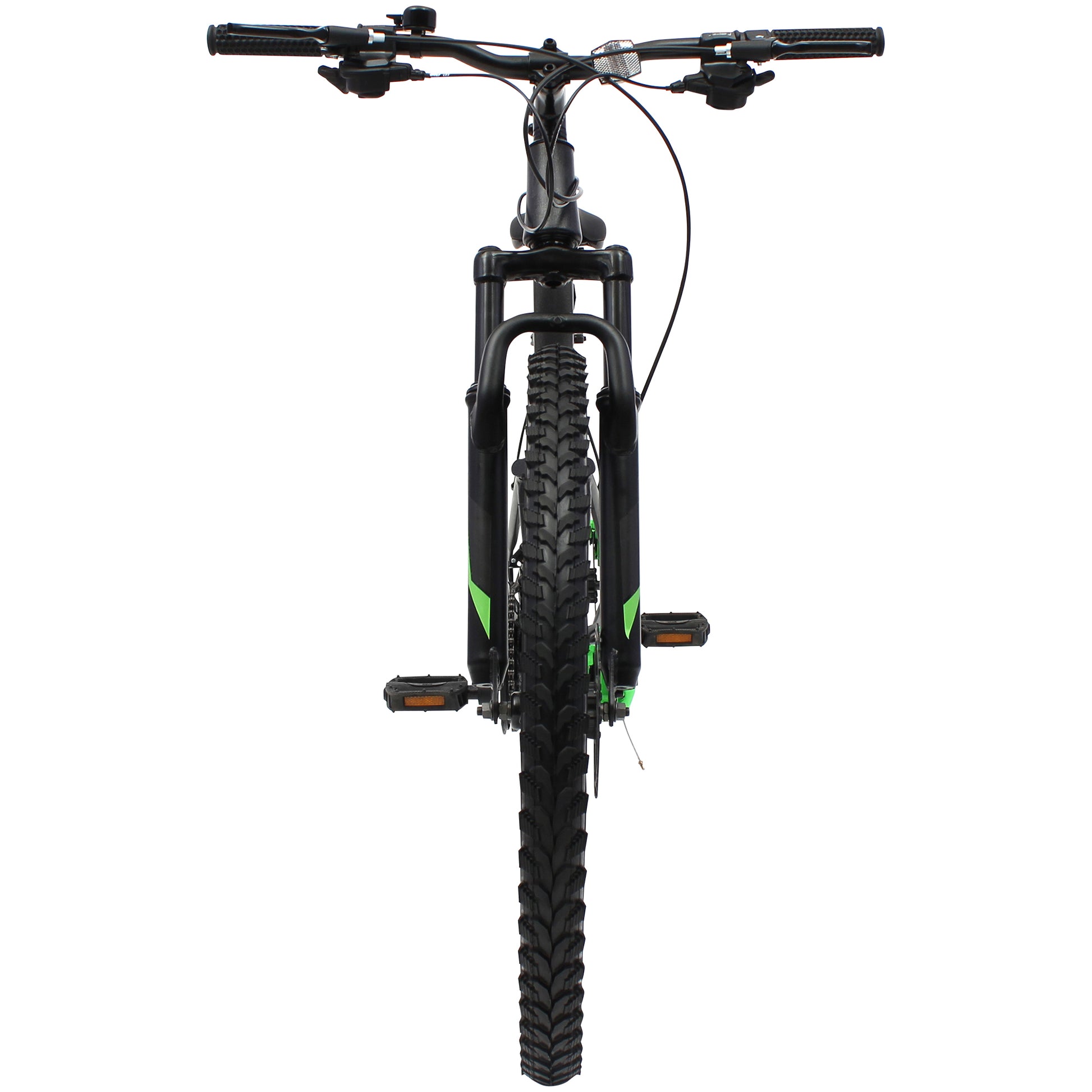 Huffy Marker 26” är en kraftfull full suspension-MTB byggd för ungdomar från ca 13 år och vuxna som vill ta sig ut på stigar och tuffare terräng. Den robusta svarta stålramen kombineras med 21 Shimano-växlar, precisa thumb shifters och dubbla mekaniska skivbromsar för maximal kontroll i all typ av offroad-miljö.
