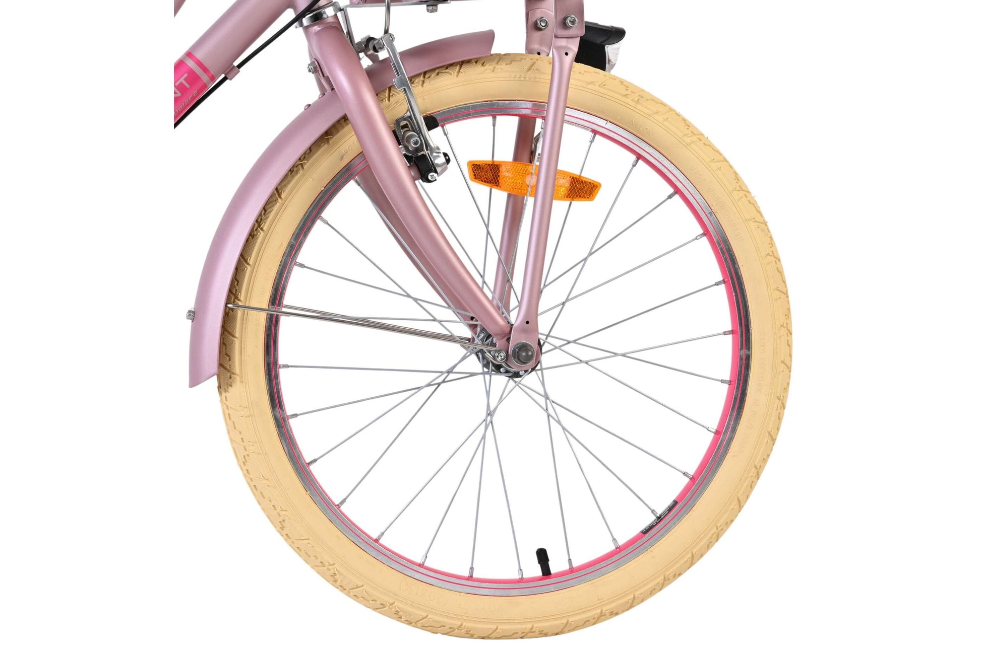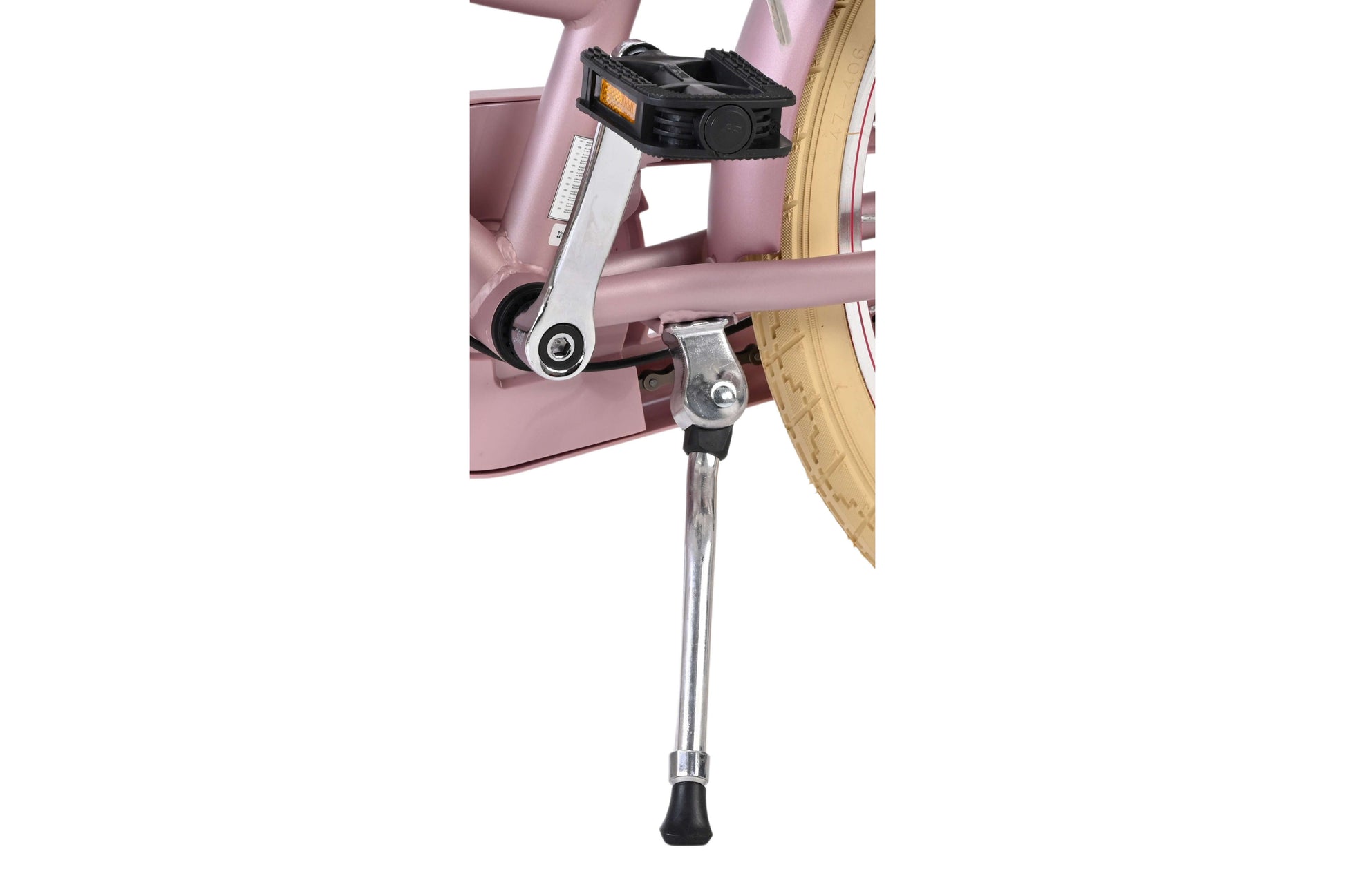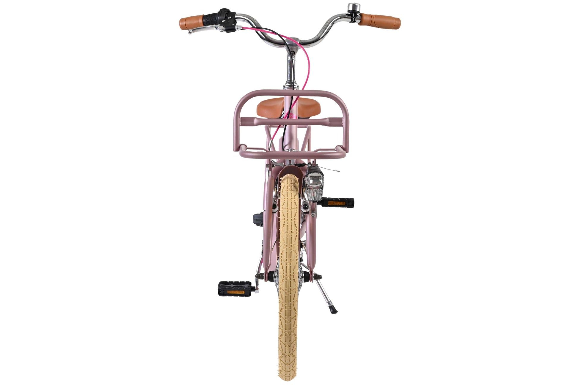 Den moderna ramen i matt rosa med ramhöjd på 31 cm ger cykeln en exklusiv känsla. Den har både framhållare och en bakre pakethållare integrerad i ramen, vilket gör det enkelt att ta med väskor eller skolmaterial. Den mjuka sadeln och de kromade detaljerna ger cykeln en lyxig finish.
