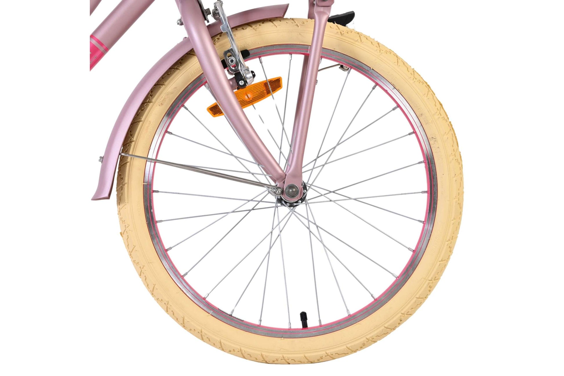 Den matt rosa ramen med en ramhöjd på 31 cm ger cykeln ett trendigt och modernt utseende. Den är utrustad med både framhållare och integrerad bakre pakethållare, vilket gör det enkelt att ta med väska, jacka eller skolmaterial. Den mjuka, lyxiga sadeln bidrar till hög komfort under cyklingen.